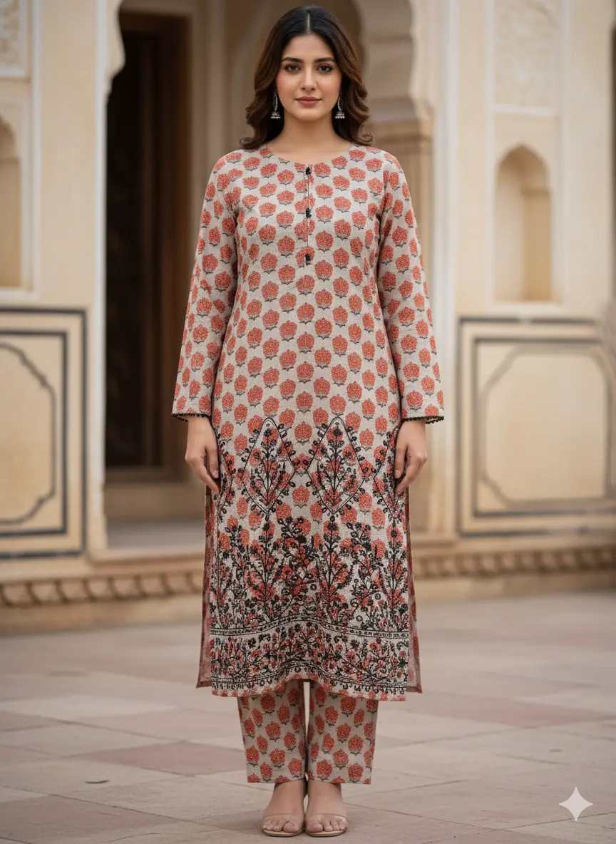 Made from premium quality khaddar, itโs soft, durable, and perfect for the winter season. The outfit blends traditional charm with a modern touch, making it ideal for family gatherings, casual outings, or festive wear.