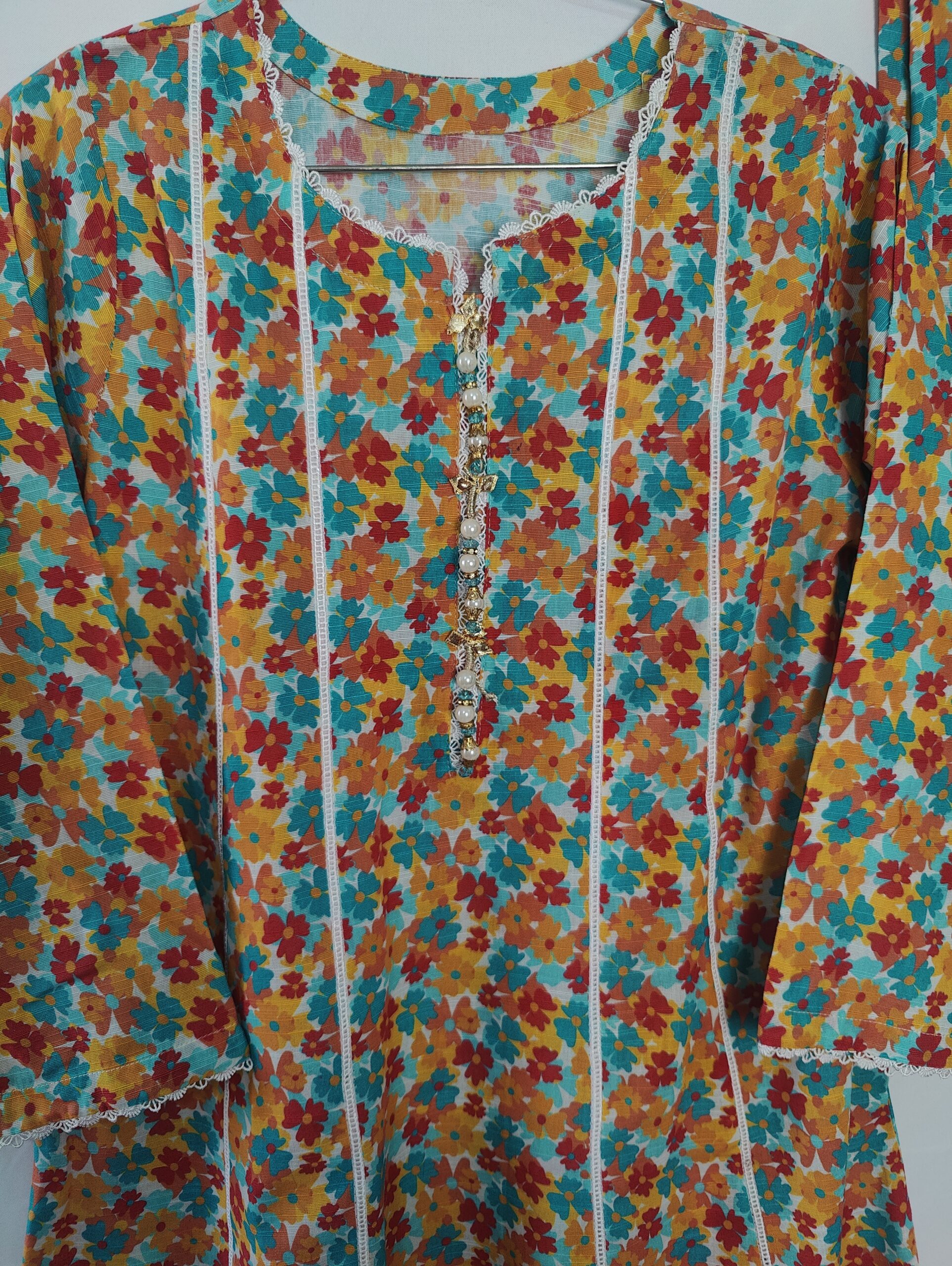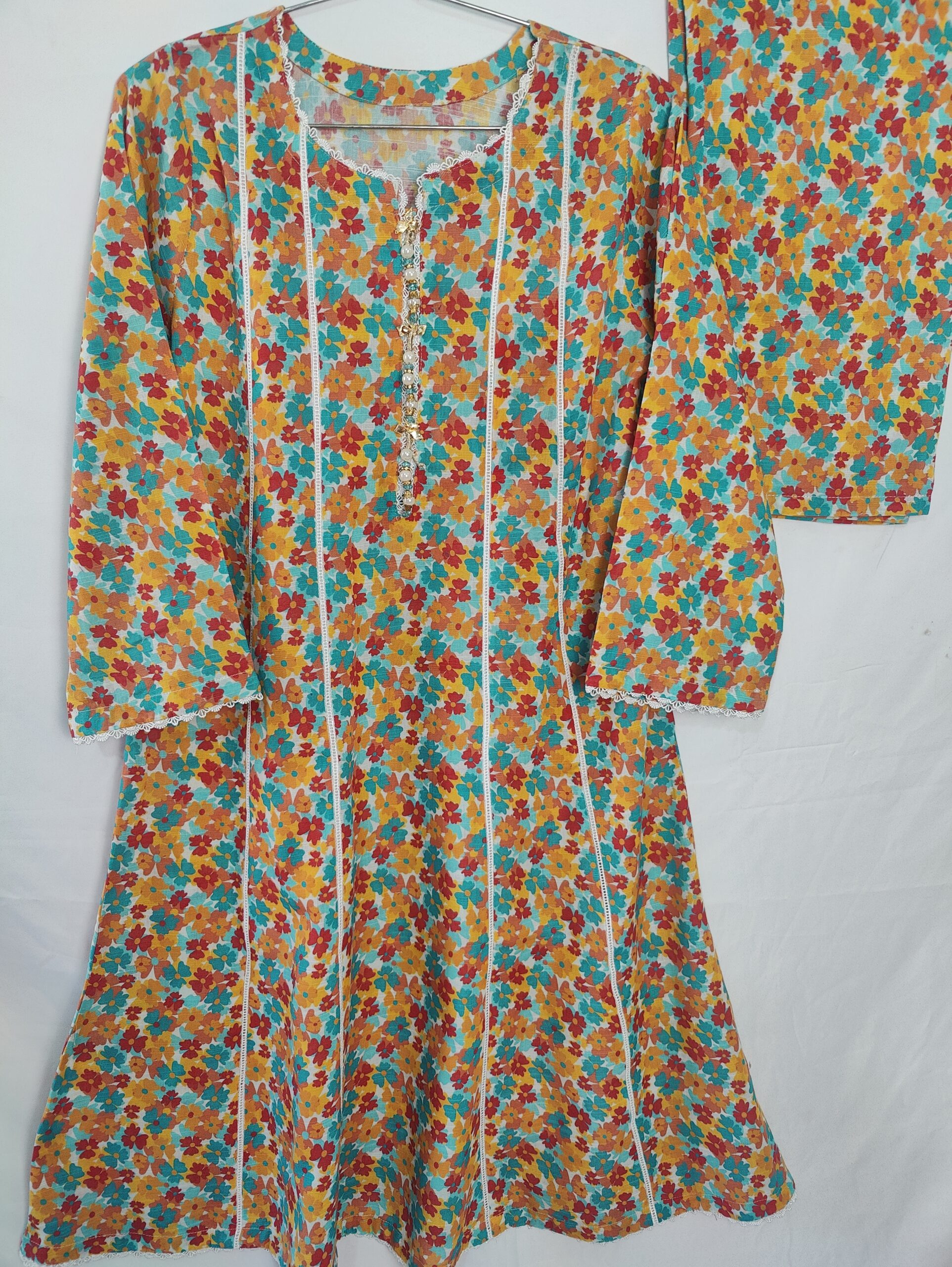 Add a touch of winter charm to your look with this beautifully crafted 2-piece khaddar frock set. Designed with a vibrant multi floral print, this frock brings freshness, color, and elegance to your everyday style.