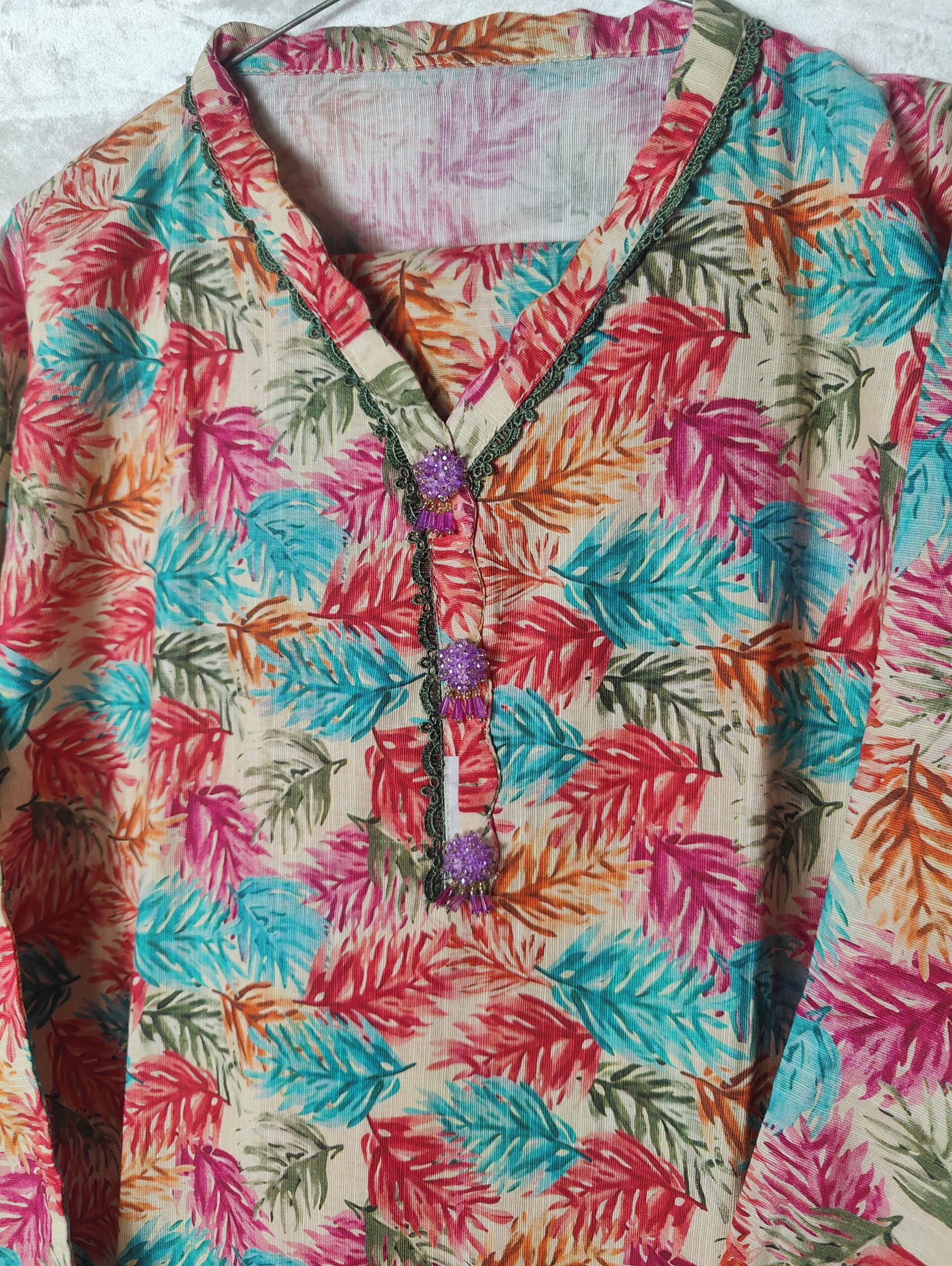 Elevate your wardrobe with this elegant 2-piece pink khaddar set, designed for timeless style and comfort. The kurta features a delicate leaf print enhanced with intricate embroidery along the neckline and sleeves, adding a subtle yet sophisticated charm. Crafted from premium khaddar, it’s soft, breathable, and perfect for both casual gatherings and festive occasions. The set comes with matching bottoms for a coordinated, polished look that’s effortless and chic.
